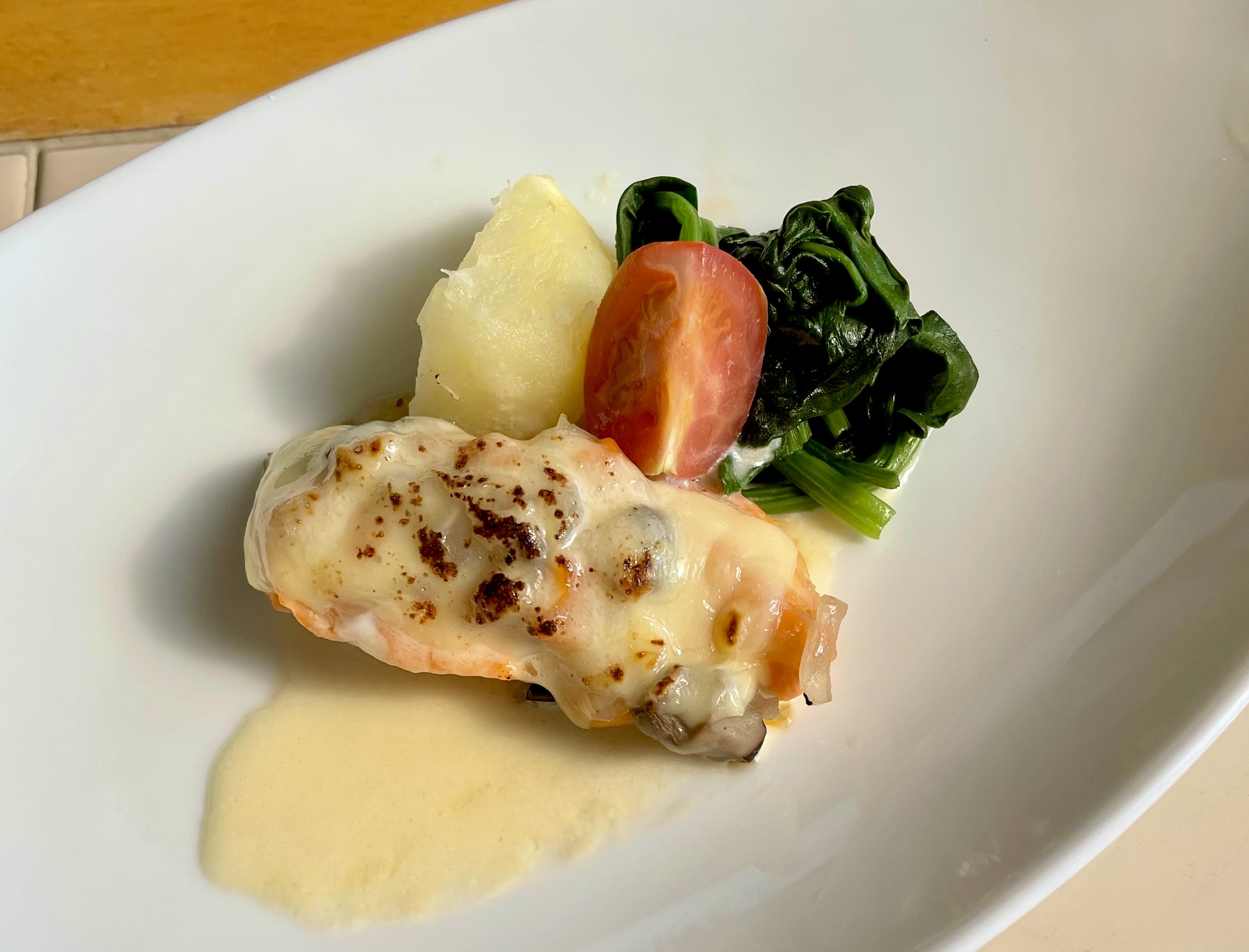 このソースは、少し酸味も加わって軽いクリームの口当たりがサーモンにぴったりです。